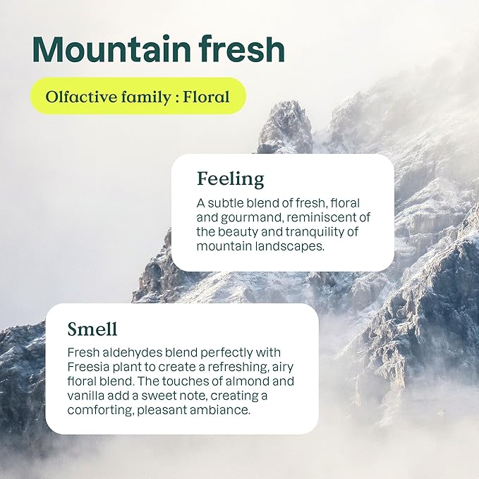 - MOUNTAIN FRESH FRAGRANCE: Its aldehyde notes blend perfectly with freesia to create an airy floral blend matched with a mildly sweet combination of almond and vanilla. This blend will envelop your laundry in a fresh and comforting fragrance.