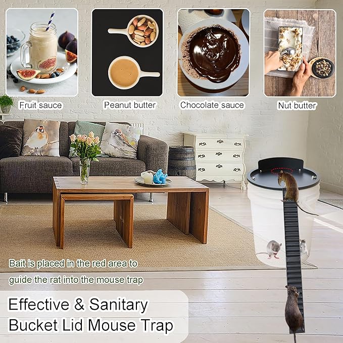 - Versatile Compatibility: Compatible with standard 5-gallon buckets, this trap lid can be easily attached to any bucket of that size for convenient and effective mouse control.