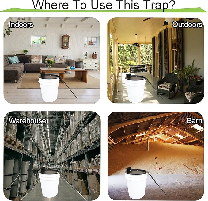 - Indoor/Outdoor Use: Suitable for both indoor and outdoor environments, this mouse trap bucket can be used in various settings, such as homes, garages, sheds, or barns.