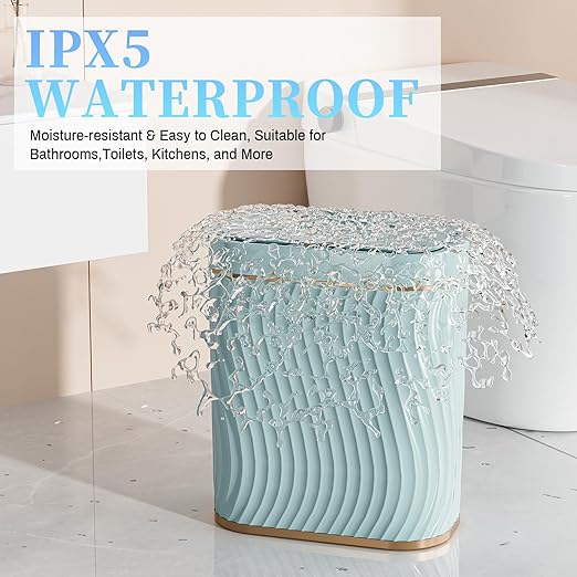 - 【STYLISH & FUNCTIONAL】 Our trash can features a sleek, unique design with novel wave stripes that not only add visual aesthetics but also provide anti-slip functionality. Its modern oval shape makes it a perfect fit for bathrooms, kitchens, and other rooms, optimizing space usage.