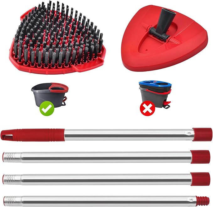 - 【Compatibility】:Mop handle, upgraded scrub brush and mop base combo set ONLY compatible with Ocedar EasyWring 1-Tank Spin Mop System, please note that the mop handle also works with most other spin mops and brooms with American‑style threaded joints. Package includes:4-section mop handle, 1 upgraded mop scrub brush, 1 triangle mop base cover(No Bucket)