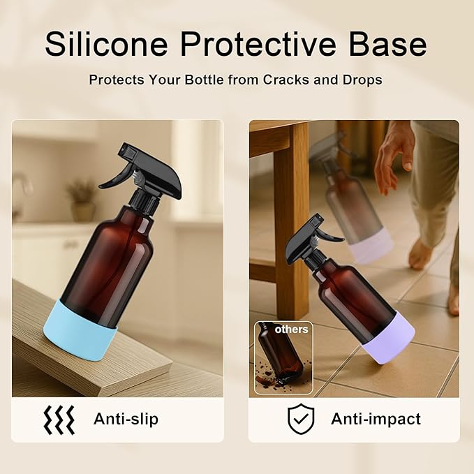 - PREMIUM GLASS SPRAY BOTTLES & STURDY SILICONE SLEEVE: Our glass sprayers are crafted from high-quality material, ensuring for daily use with cleaning solutions, hair products, or plant care. The included silicone sleeve ensures minimizing the risk of breakage and slips, making it safe for daily use.