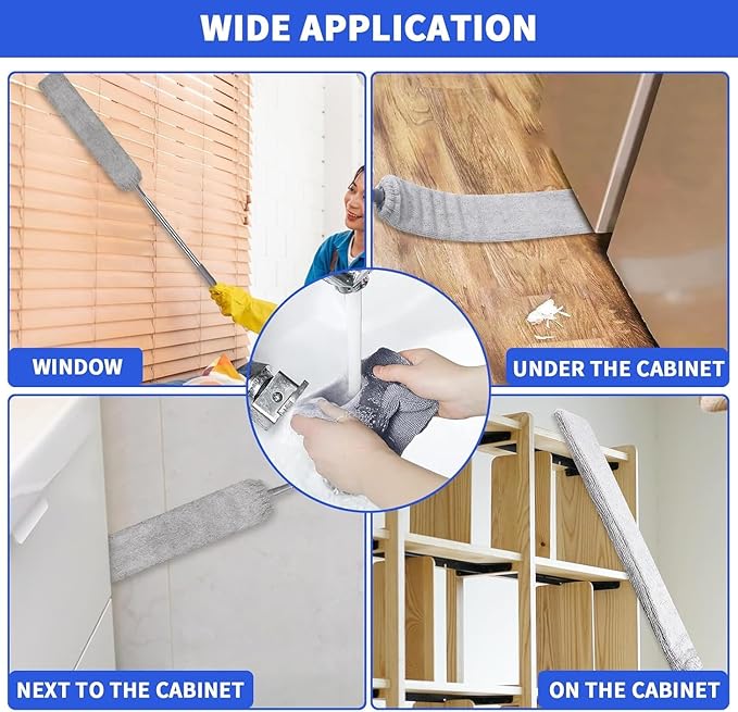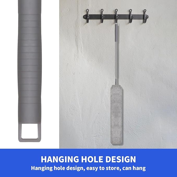- Machine-Washable & Space-Saving – The 4 included microfiber cloths are reusable and machine-washable for long-term use. The retractable gap dust cleaner collapses for compact storage, and the removable pole can be hung on hooks or stored in drawers. No more bulky cleaning tools cluttering your space!