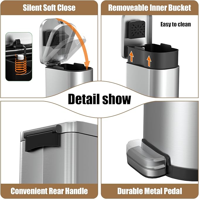 - Built to Last, Indoors or Out: Made from heavy-duty stainless steel, our outdoor garbage can with lid is your all-season partner. It withstands sun, rain, and daily use without fading, cracking, or warping