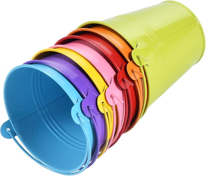 - Multipurpose: Our Colorful Metal buckets can store succulent, plant, and artificial flowers for decorating your garden, storing stationery at school, party favors, beach bucket, or carry ice cubes for camping or picnics
