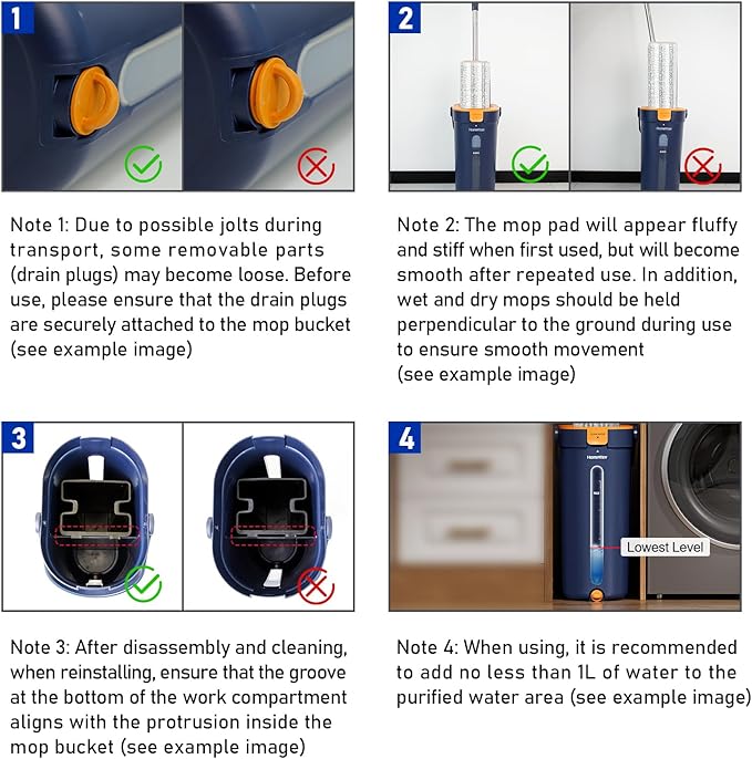 - 【Easy Storage and Easy Draining】Mops and buckets for cleaning have a compact design with a removable mop handle for easy storage in the closet, pantry, or under the sink. Mop and bucket for floor cleaning comes with a handle and two bottom drain plugs for easy drainage. Dust mop for hardwood floor and bucket's size: 10.2x6.7x15.8 inch, weight: 4.23 lbs