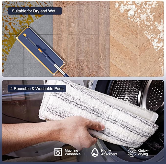 - 【4 Reusable Microfiber Pad】Machine washable wall mop for 14×4 inch mop head pad is made of plush microfiber, which has the functions of absorbing water, drying, and being easy to clean, hardwood floor mops can be used for wood, glass, marble, porcelain, and ceramic, laminate, and vinyl floors