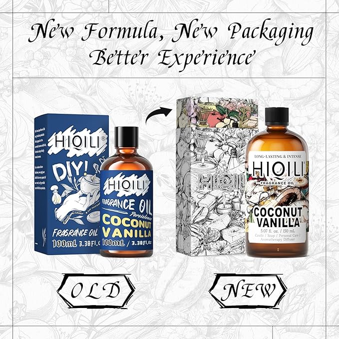 HIQILI Coconut Vanilla Fragrance Oil - for Candle Making, Soap Making, Essential Oil for Diffuser, Humidifier, Home& Hotel & Car Use - 5.07 Fl Oz