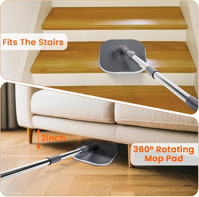 - FLEXIBLE AND CONVENIENT: The mop head can be rotated 360 degrees, and the length of the handle can be adjusted from 40" to 48" for easy to clean effortlessly reaches walls, door frames, and high cabinets for complete, allowing you to clean high or low without bending.
