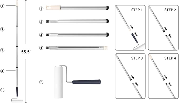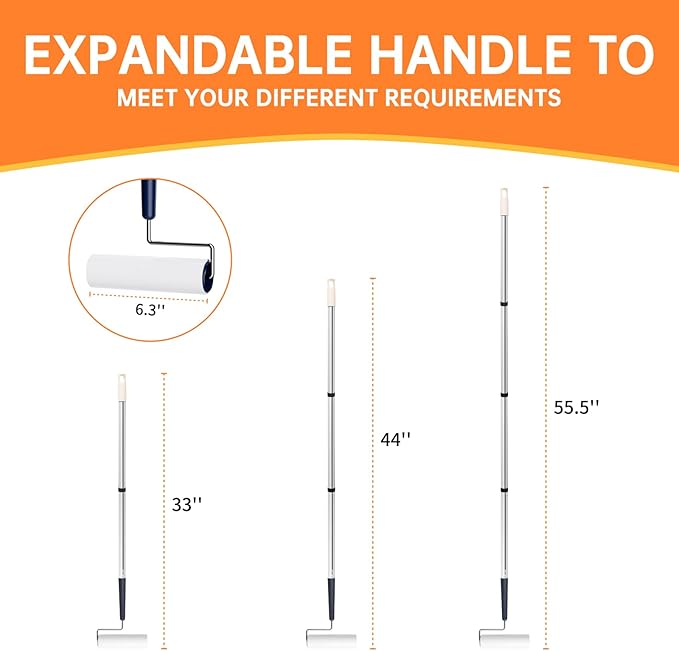 - Max 55’’ Length & 3-in-1 Design: The giant lint roller remover with a total pole length of 55", allows for effortless cleaning without bending over. With a handle connecting rod and 3 interchangeable poles,and a 13.77" replacement length for easy cleaning of difficult-to-reach areas.