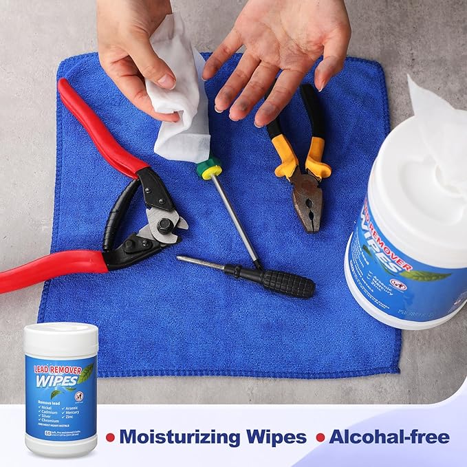 - Effective Contaminant Removal: these lead off cleaning wipes efficiently remove lead, heavy metals, dust, grease, oil stains, and dirt from hands, tools, and surfaces; Designed to reduce exposure to harmful substances, they are especially beneficial in industrial and workshop environments where cleanliness is crucial