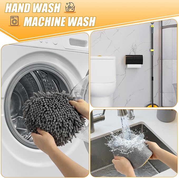 - ✔Reusable Wall Mop: The clean walls mop includes 2 washable pads,one is microfiber for for wet use, the other is chenille mop pads for dry dust use. The mop pads of wall and baseboard cleaner adopts a full-edge design,soft, You can be used safely on smooth walls and other smooth surfaces