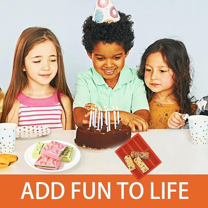 - Easy Baking: Includes a 2-piece set of 8-cavity granola bar silicone molds and a 3-piece set of baking spatulas to help you easily create your favorite chocolate bars, nutritious cereal bars, protein energy bars and brownie cake cheesecake and other desserts and snacks, and unleash your culinary creativity.