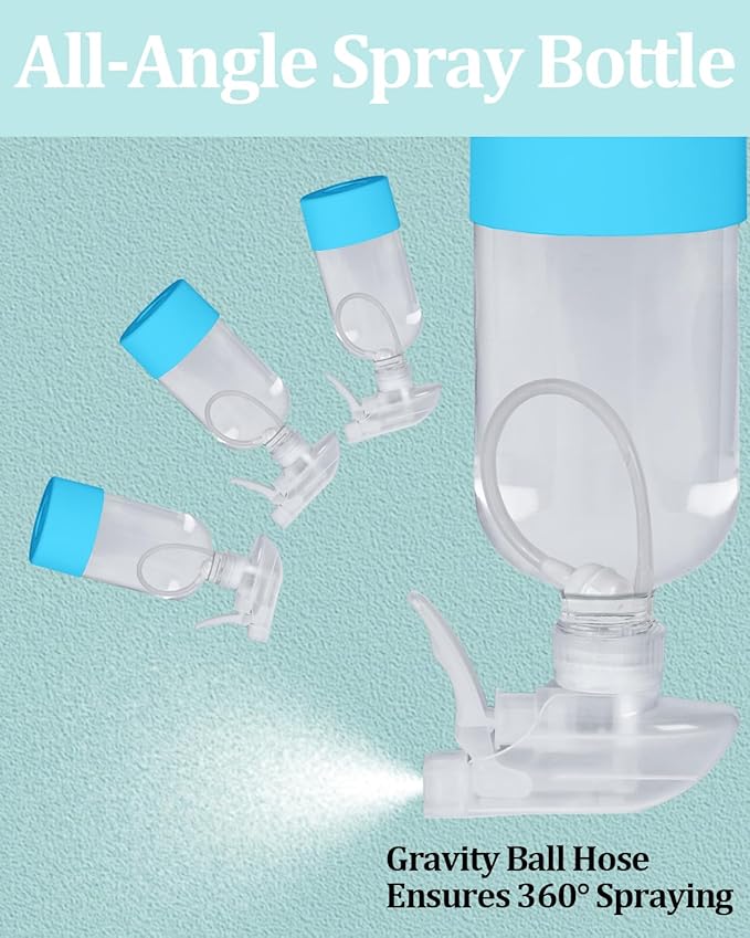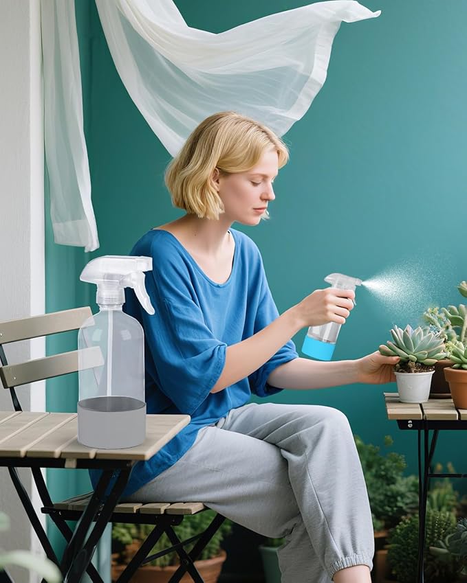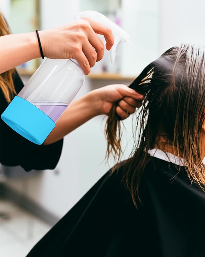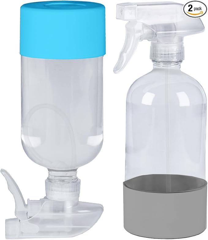 2 Pack 360° Glass Spray Bottles with Silicone Sleeve, 16 oz Empty Refillable Containers with Adjustable Spray Nozzles, Spray Bottles for Hair, Cleaning Solutions and Plants Grey&Blue