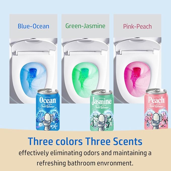 Beverage can Toilet Bowl Cleaner,Septic Toilet Bowl Tablets in Bottles, Automatic Long-Lasting Toilet Cleaner Bottle,Powerfully Cleans and Prevent Stain Build Up (Ocean, Jasmine, and Peach Scent)