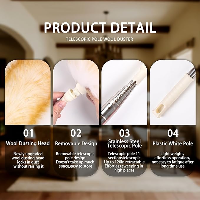 - Gentle care for delicate surfaces: The fluffy and soft texture will not scratch screens or ceramic surfaces, making it ideal for cleaning various delicate items. This extendable wool duster is particularly effective for cleaning computer keyboards, antiques, high-end appliances, and other delicate surfaces