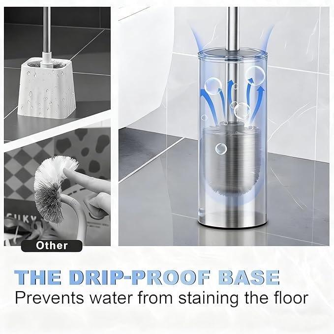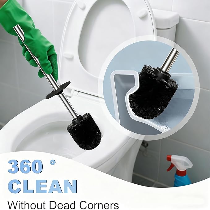 - 【Upgraded 304 Stainless Steel Design: Stable & Elegant】Say goodbye to flimsy plastic toilet brushes that tip over easily! Our upgraded toilet brush is crafted from premium 304 stainless steel, which adds weight for stable standing—no more wobbly holders. The sleek, modern look elevates your bathroom decor, and the hidden brush head design eliminates awkwardness when guests use your bathroom. It keeps your space tidy while boosting visual appeal.