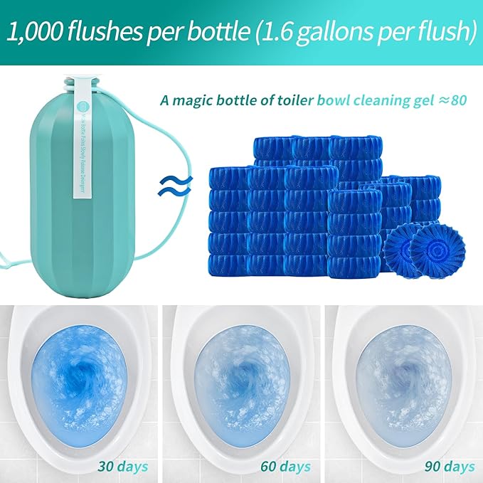 - LAB-VERIFIED 90-DAY ACTION:Continuously releases cleaning agents for up to 3 months under lab conditions* (tested at 1.6 gal/flush every 3 hrs, 1000+ flushes). *Actual duration may vary based on water usage.