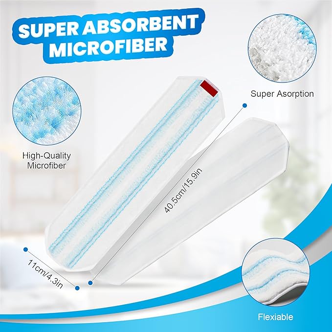 - 【SUITABLE FOR ALL FLOOR TYPES】: Our replacement mop pads are gentle on all floor types, whether hardwood, laminate, tile, marble, or vinyl. The microfiber material ensures a deep clean without causing damage or scratching. The quick-drying, water-absorbing technology prevents water spots and seepage into seams while trapping dirt for a deeper, more effective clean, perfect for every household's cleaning needs.