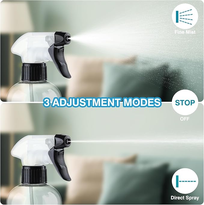 - 【Package】You will get 2pcs 10oz/300ml transparent water spray bottle and 2pcs dual-color spray head