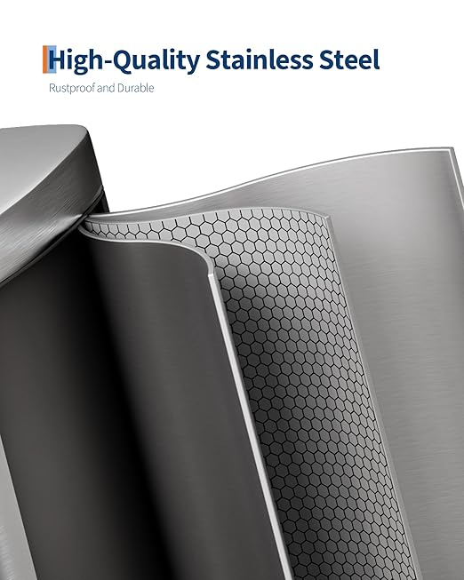 - [HIGH-QUALITY MATERIALS] – The Garvee large trash can with lid is engineered for longevity. Its 410 Garade ferritic stainless-steel shell resists rust and scratches while retaining lasting luster. The polypropylene inner buckets repel stains, odors. The thick ABS lid with stainless overlay withstands dents, stains, odors; the industrial-steel pedal endures 150,000+ steps, and the ABS hinge survives over 300,000 open/close cycles