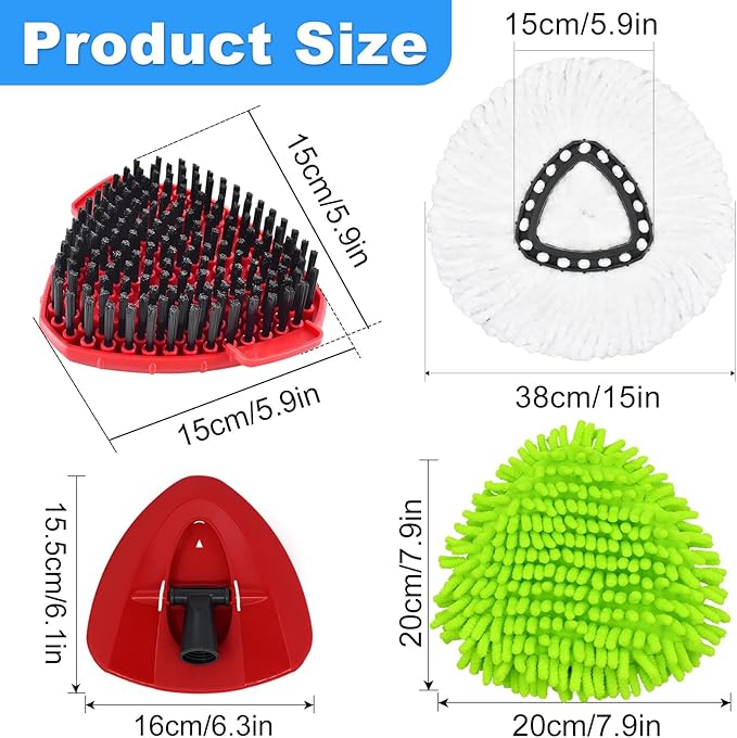 - Cleaning Kit:2 Microfiber Mop refills+2 Chenille Mop Heads Replacements+1 Upgrade Scrub Brush +1 Spin Mop Base are compatible with O Cedar(Easy Wring 1-Tank System), ensuring optimal performance and an easy, hassle-free cleaning experience,Meet the needs of different cleaning scenarios.