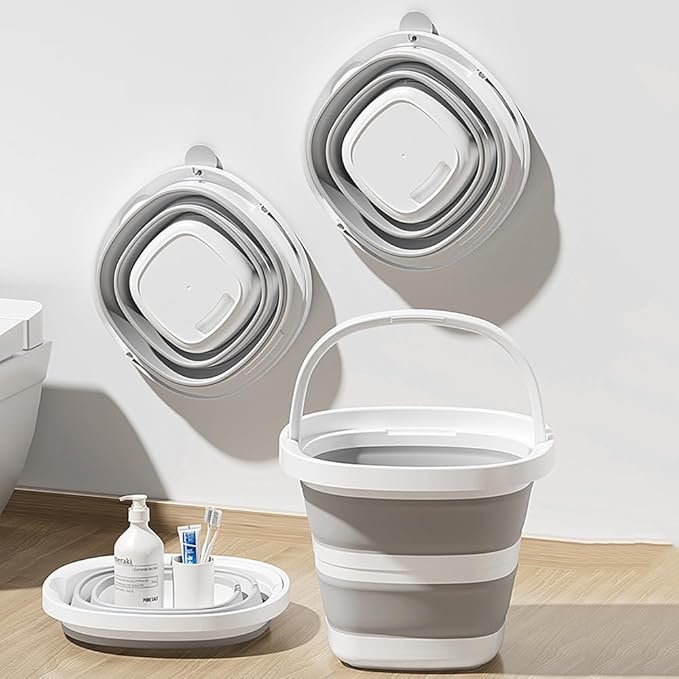 - COLLAPSIBLE DESIGN: Space-saving bucket collapses from 16 inches tall to just 2 inches when folded, perfect for storage in RVs, boats, and compact spaces.