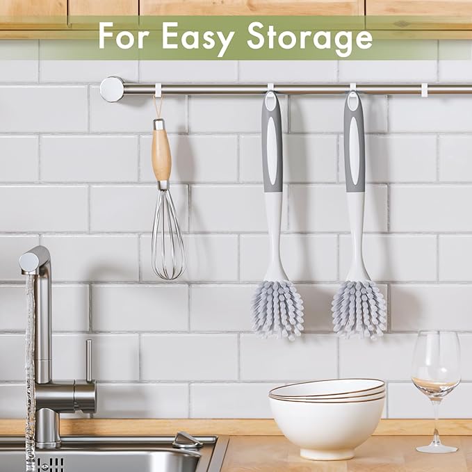 - Ergonomic design: Dish scrub brush easy to apply force and allows for heavy duty cleaning in kitchen. The sink scrubber brush handle is ergonomic and provides a comfortable grip, making it easy to maneuver the brush.