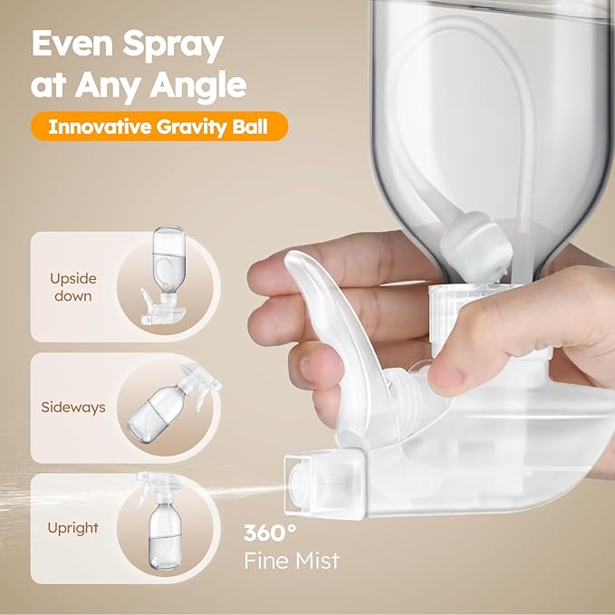 - 【360° All-Angle Spray】8 OZ Glass Sprays Bottles Designed with an advanced nozzle and gravity-ball system, our spray bottles let you spray upside down, sideways, or upright without interruption. Perfect for hard-to-reach spots, high shelves, or low-angle applications.