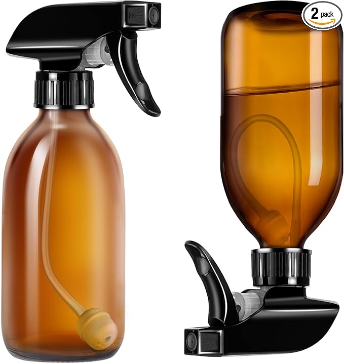 - 【360° All-Angle Spray】8 OZ Glass Sprays Bottles Designed with an advanced nozzle and gravity-ball system, our spray bottles let you spray upside down, sideways, or upright without interruption. Perfect for hard-to-reach spots, high shelves, or low-angle applications.