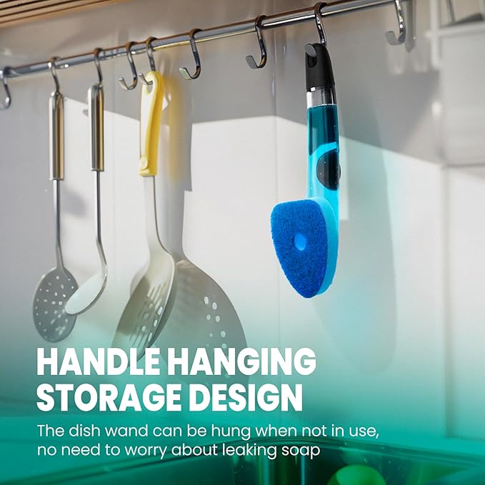 - Efficient Soap Saving Design: The HELIME dishwand sponge refill features a unique middle-hole design that dispenses soap with just 1-2 light button presses. This innovative design ensures precise soap usage, reduces waste, and extends the life of your dish soap
