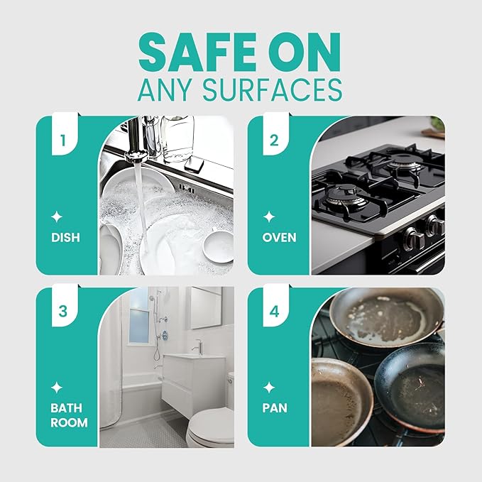 - Versatile & Long-Lasting: Safe for all surfaces, these durable sponges are ideal for cleaning dishes, pots, pans, cups, bottles, and more. No pre-soaking required—effortlessly tackle baked-on messes and keep your kitchen sparkling clean
