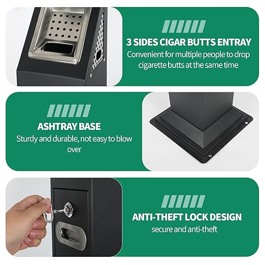 - Commercial Trash Receptacle: Reinforced base with attached expansion screws can be firmly fixed to the ground, wind resistance, collision prevention, effective prevention of tipping, designed for outdoor environments with heavy pedestrian traffic.