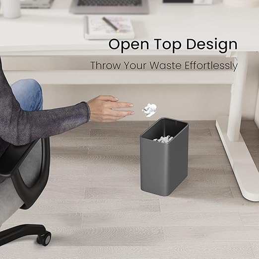 - Compact Size for Tight Spaces: With dimensions of 8.86''L x 5.51''W x 10.16''H, this 2.1-gallon (8-liter) gray trash can is purposefully small, perfect for limited spaces where larger bins may not fit. Ideal for light use, it’s a discreet waste solution for bathrooms, under sinks, under desks, nside cabinets, and narrow areas, ensuring you make the most of every inch