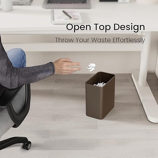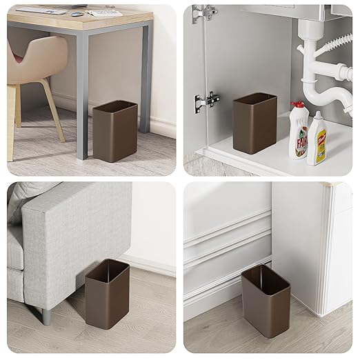 - Compact Size for Tight Spaces: With dimensions of 8.86''L x 5.51''W x 10.16''H, this 2.1-gallon (8-liter) brown trash can is purposefully small, perfect for limited spaces where larger bins may not fit. Ideal for light use, it’s a discreet waste solution for bathrooms, under sinks, under desks, nside cabinets, and narrow areas, ensuring you make the most of every inch