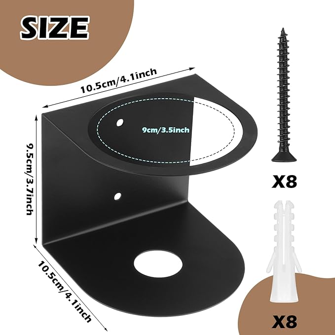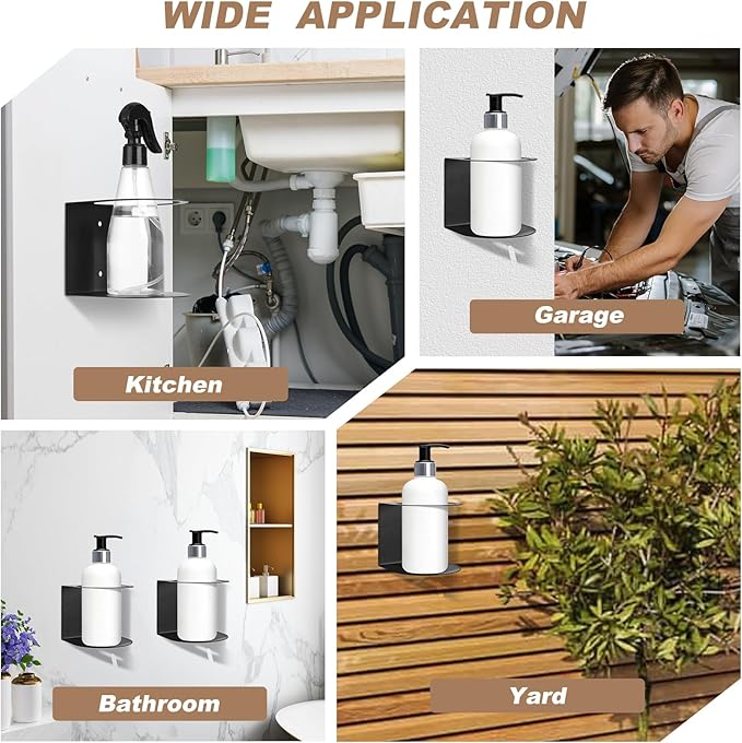 - Proper Size for Bottle Storage: You will receive 4 pieces of wall-mount spray bottle holders, each measuring 4.1" x 4.1" x 3.7". Features with a 3.5" diameter bottle hole, expertly sized to firmly grip standard spray bottles like cleaners, garden sprays, or detailing products, preventing tipping or falling. Ideal for keeping your sprays instantly accessible in the garage, workshop, under the sink, or utility room