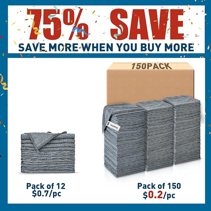 - 【Soft and Lint-Free】TEAWOO microfiber towels bulk supply of ultra-soft, non-abrasive microfiber towels ensure a scratch-free cleaning experience on surfaces, paint, glass, and coatings. Perfect for cleaning tough grease and dirt from your car, kitchen, and windows, leaving no traces behind.