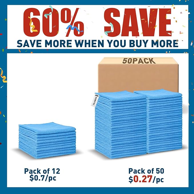 Microfiber Cleaning Cloths-50 Pack, Microfiber Towels Bulk, Towels for Cars & Home, Cleaning Rags Blue (12x12 inches)