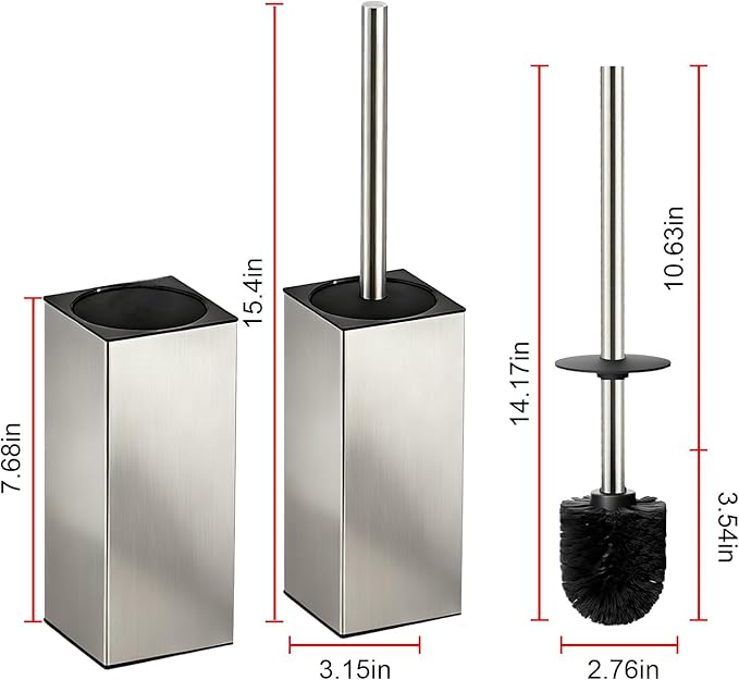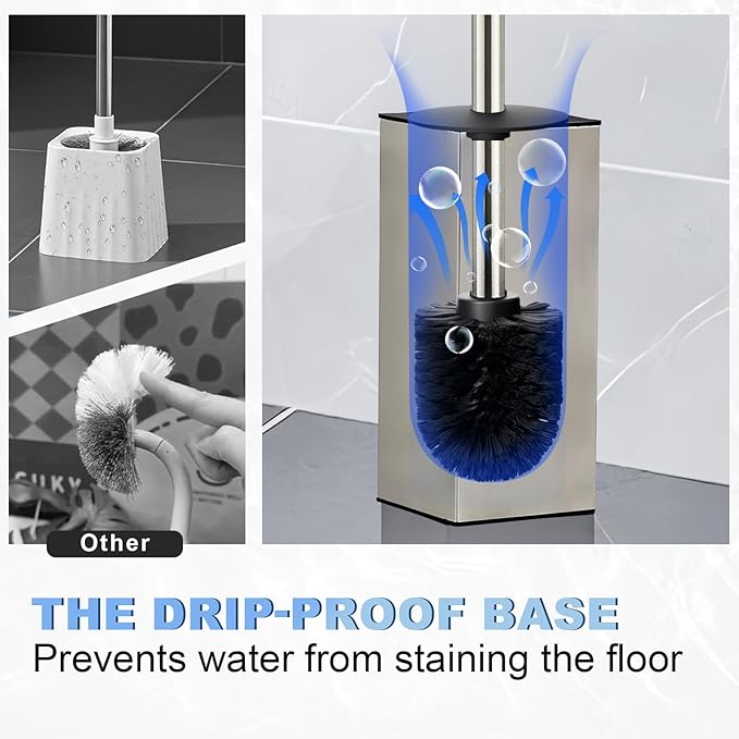 - 【Upgraded 304 Stainless Steel Design: Stable & Elegant】Say goodbye to flimsy plastic toilet brushes that tip over easily! Our upgraded toilet brush is crafted from premium 304 stainless steel, which adds weight for stable standing—no more wobbly holders. The sleek, modern look elevates your bathroom decor, and the hidden brush head design eliminates awkwardness when guests use your bathroom. It keeps your space tidy while boosting visual appeal.