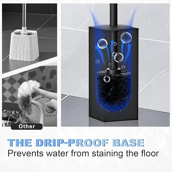 - 【Upgraded 304 Stainless Steel Design: Stable & Elegant】Say goodbye to flimsy plastic toilet brushes that tip over easily! Our upgraded toilet brush is crafted from premium 304 stainless steel, which adds weight for stable standing—no more wobbly holders. The sleek, modern look elevates your bathroom decor, and the hidden brush head design eliminates awkwardness when guests use your bathroom. It keeps your space tidy while boosting visual appeal.