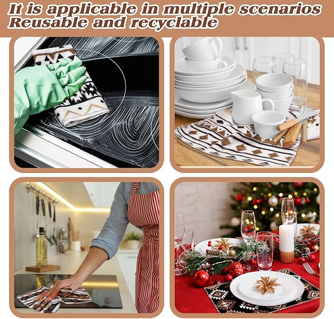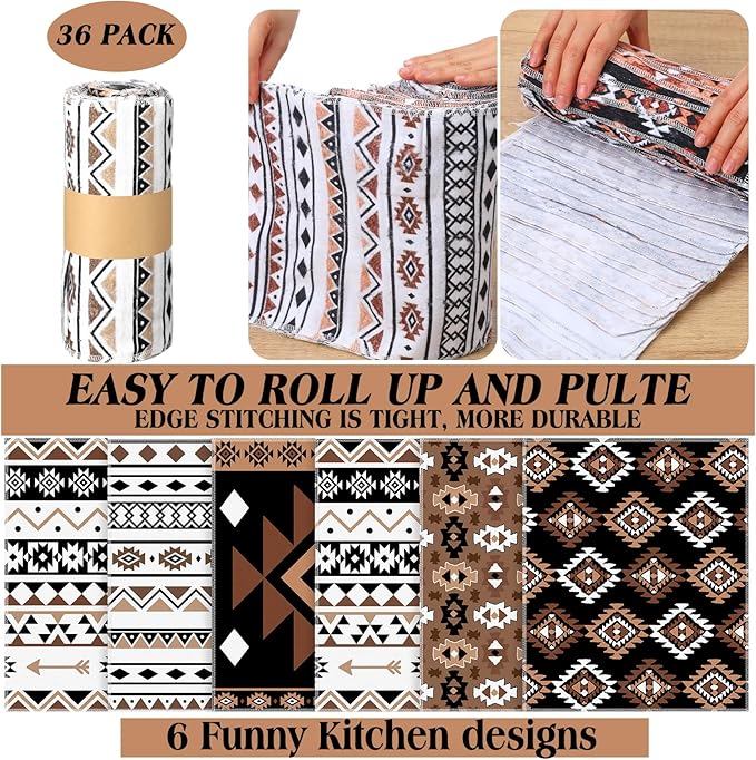 36 Pack Reusable Cleaning Cloths Washable Cotton Kitchen Towels for Home(Western Aztec,Brown)