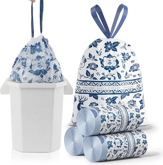 - Durable & Elegant: This 13-gallon garbage bag features elegant blue-and-white porcelain printing. It measures 27.5 inches (L) x 23.7 inches (W), with a thickness of 1 mil, making it an ideal storage solution for home organization.