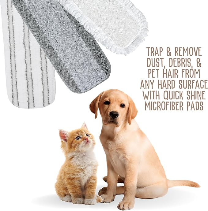 - Reusable & Refillable for Long-Term Savings and Value: Easy to assemble and battery-free, with reusable washable pads and a refillable cartridge perfect for Quick Shine Safer Choice Cleaners that deliver a customizable clean and long-term savings with every use. All-In-One Spray Mop Kit perfect for all homes including those with kids and pets