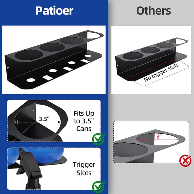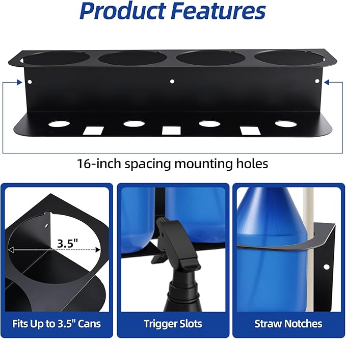 - Spray Bottle Wall Rack: Holds 4 spray bottles/cans vertically (garage, shop, office) to prevent loss and clutter in tight spaces