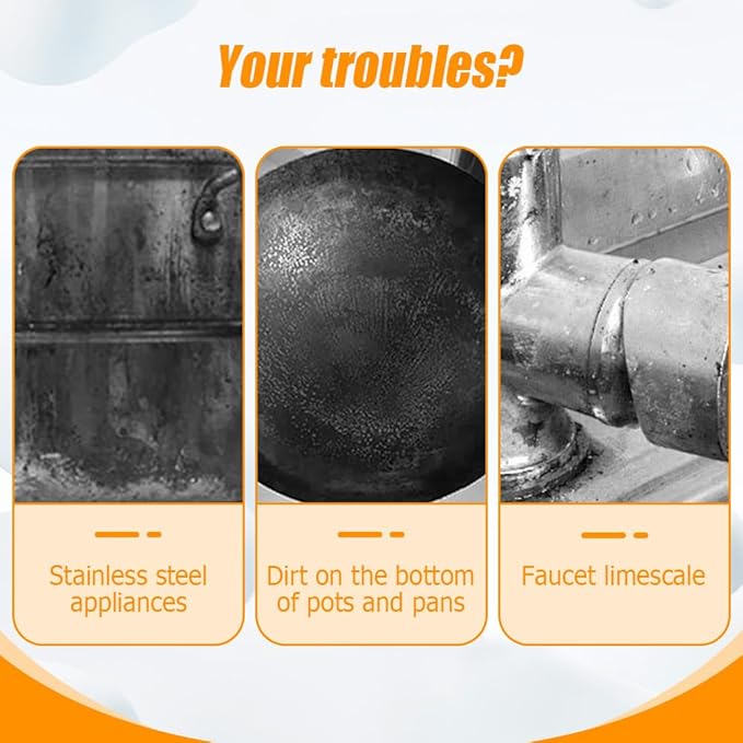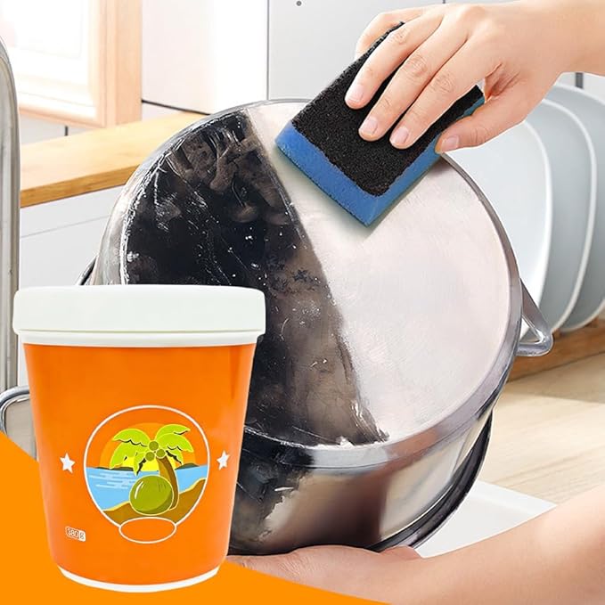- ✔️Effectively removes stubborn grease and burnt-on food from stovetops, ovens, pots and pans without leaving scratches.