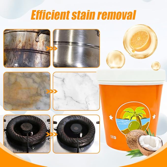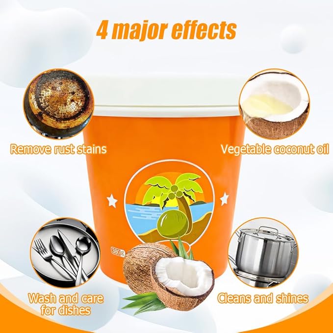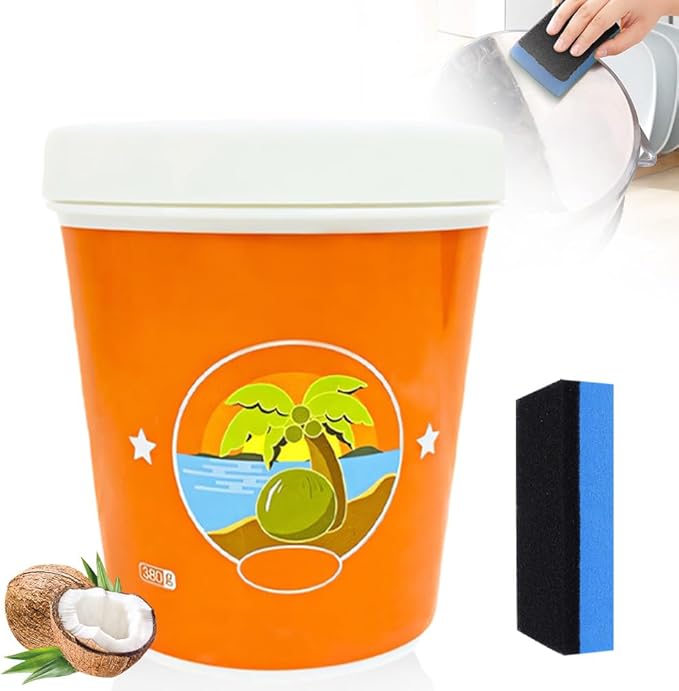 13.4oz Multi-Purpose Coconut Oil Cleaning & Polishing Paste for Kitchen Oil Stains, All-Purpose Household Cleaners Set with Spone, Effective Stainless Steel Cookware Cooktop Cleaner Removes Stains