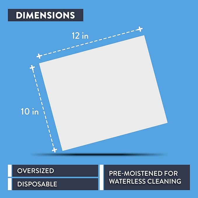 - Pre-Moistened & Portable: Oversized 10” x 12” disposable wipes come pre-moistened for waterless cleaning, making them ideal for mechanics, detailers, construction crews, and outdoor gear when soap and water are not available