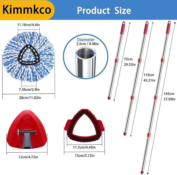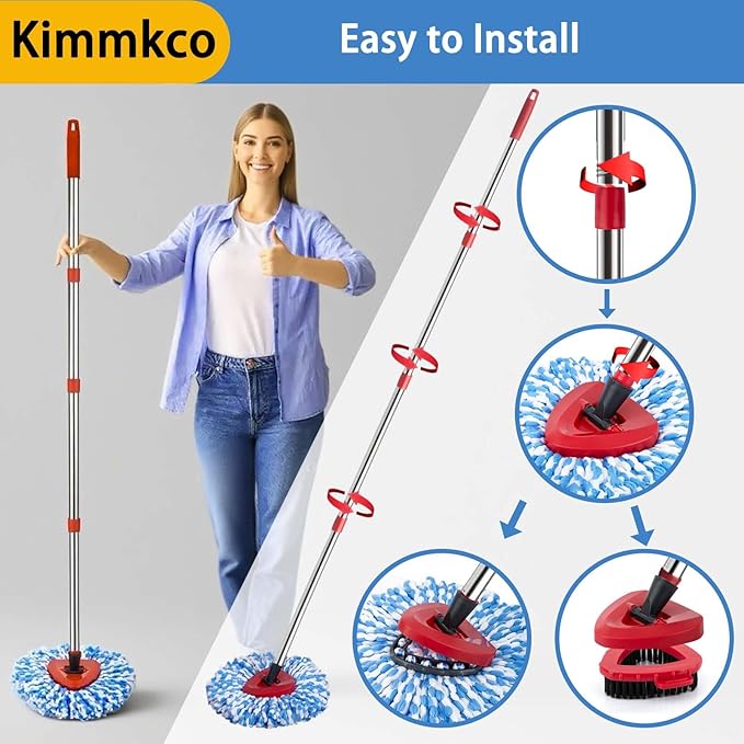 - 【Compatible Models】: Kimmkco mop replace head, mop base and mop handle set is ONLY compatible with Ocedar RinseClean Spin Mop. NOTE: The mop heads replacements accessories set only compatible with 2-Tanks RinseClean system, NOT compatible with 1-Tank system