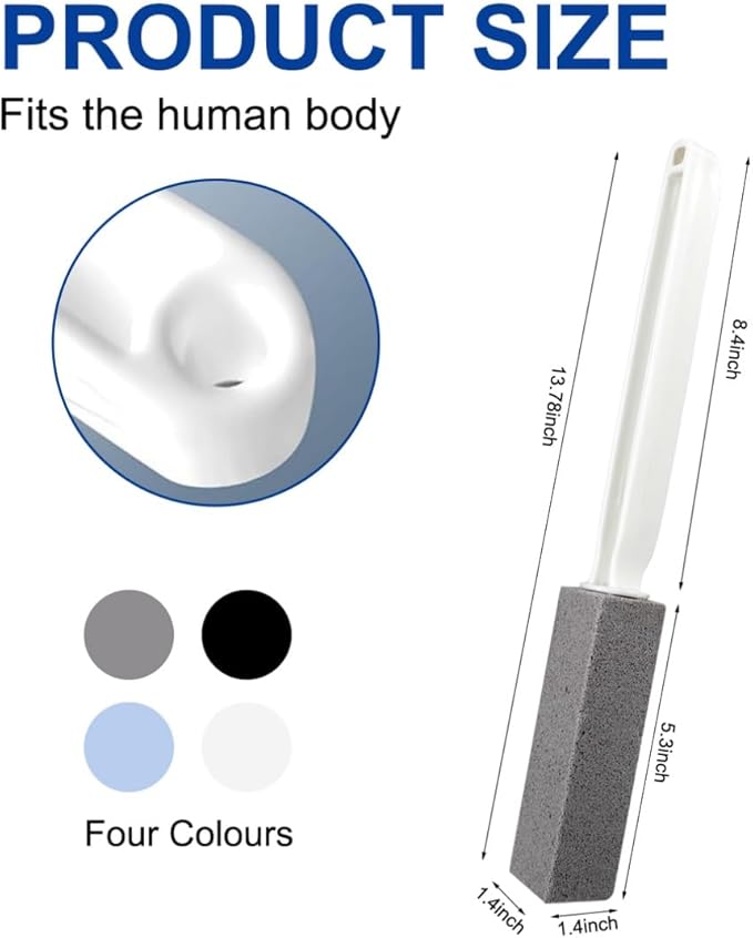 - 【Suitable Size】: Each pumice stone for cleaning measures 5.3in*1.4in*1.4in, length including handle: 13.78in. One piece each in three colors: blue, white and gray
