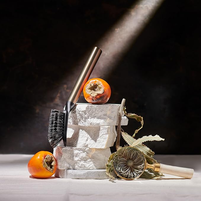 - Magnetized dish scrub brush stands upright for ease of use, thorough drying and stunning kitchen décor